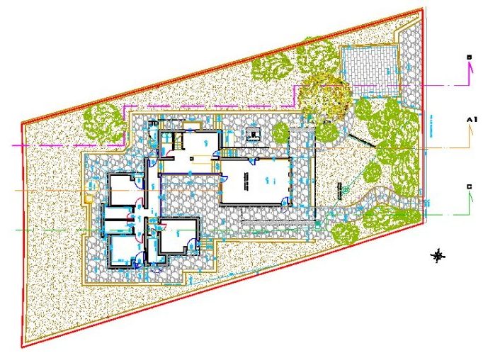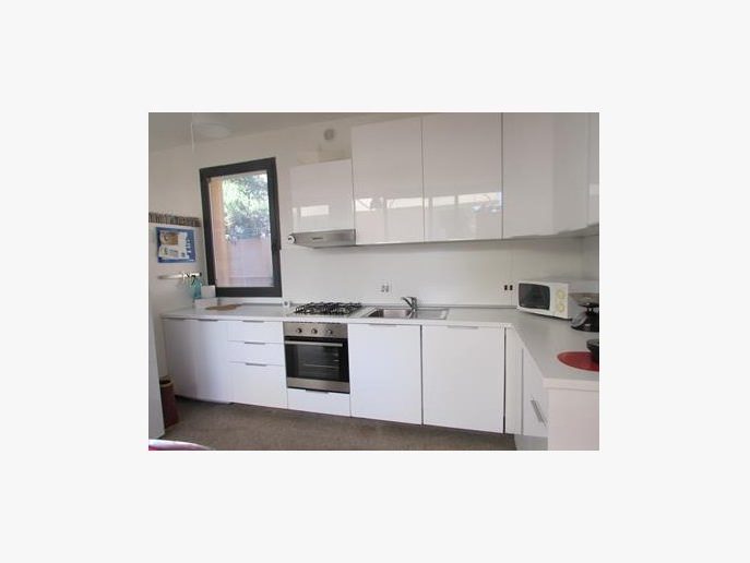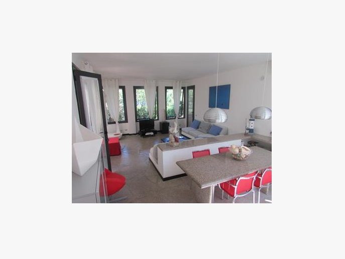 Villa singola della superficie complessiva di mq. 225, costituita da porticato d’ingresso (mq. 38), ampio salone, cucina, tre camere, tre bagni, due corridoi, ripostiglio, due locali seminterrati (mq. 32) e terrazzo superiore, con box doppio seminterrato su via Lu Gabbianu.